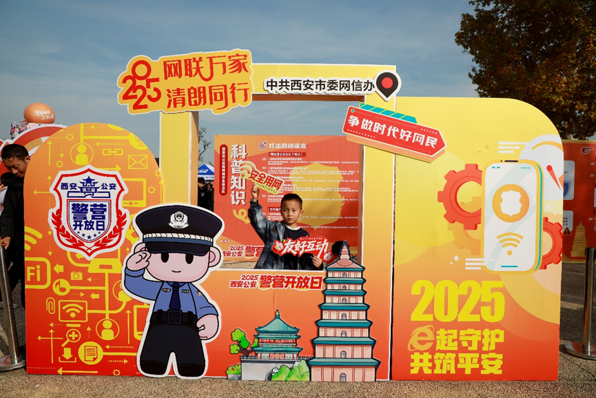 本场活动依托西安市公安局第三届警营开放日,创新策划了一场互联网法律法规特色主题展,通过普法墙展区、游戏互动区、表演互动区、合影打卡区等四个核心展区,将法律知识融入互动表演场景,让群众在沉浸式解锁警营“硬核实力”的同时,也通过丰富、有趣、深入的互动,将互联网相关法律法规牢记于心。