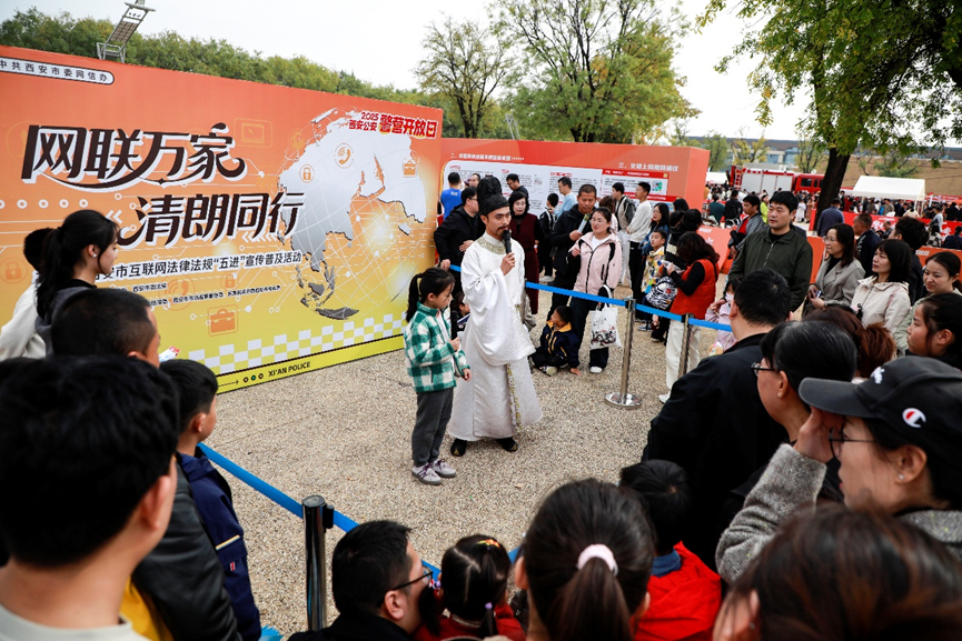 表演互动区同样精彩纷呈。活动特别邀请到西安本土顶流IP—西安城墙“金吾卫”、大唐不夜城“李白”,聚焦“如何辨别网络谣言”“维护自身合法权益”“践行文明上网规范”等内容与群众开展零距离互动、有奖问答。上午、下午各安排了两场互动知识问答活动,答对问题的群众可获得精美文创奖品,真正让普法活动既“有意义”又“有意思”。