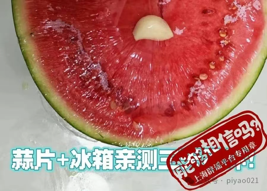 除了西瓜种植本身,与保存西瓜的传言也不少。有博主称,隔夜西瓜不能吃;也有博主表示,只要在切开的西瓜上放几片大蒜,再包上保鲜膜,就能延长西瓜的保质期。这些说法同样有问题。