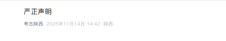 陕西省考古研究院(陕西考古博物馆)11月14日发布严正声明,内容如下: