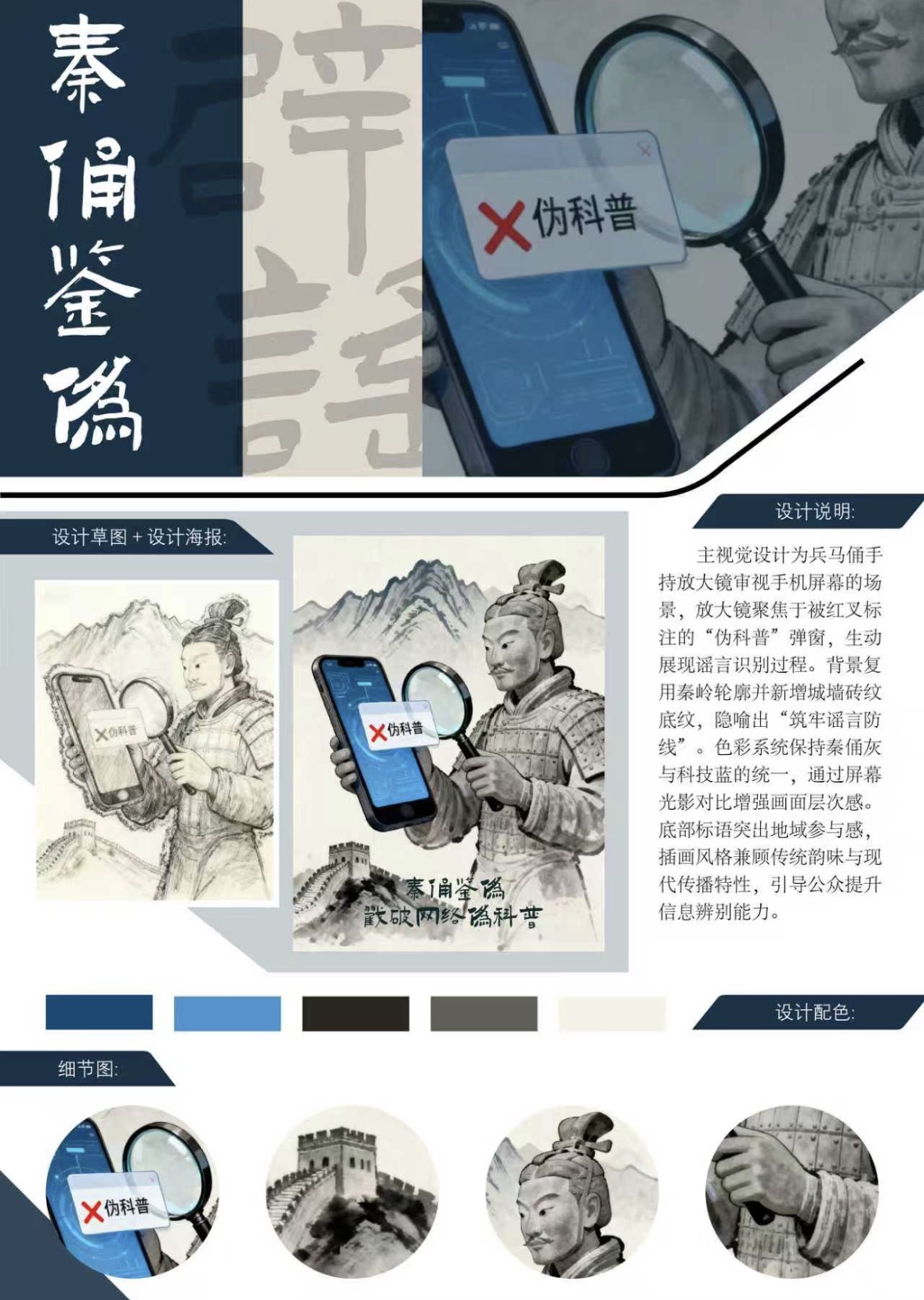 作品名称:“秦俑护真”辟谣插画视觉传播策略