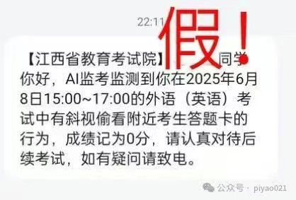 警方提示:教育主管部门和招考机构,绝不会向考生发送此类信息。请各位考生及家长注意保管好个人信息,谨防上当受骗!收到此类短信后不要慌张,不要顾虑,不要有心理负担。