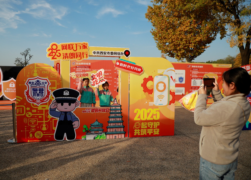 本场活动依托西安市公安局第三届警营开放日,创新策划了一场互联网法律法规特色主题展,通过普法墙展区、游戏互动区、表演互动区、合影打卡区等四个核心展区,将法律知识融入互动表演场景,让群众在沉浸式解锁警营“硬核实力”的同时,也通过丰富、有趣、深入的互动,将互联网相关法律法规牢记于心。