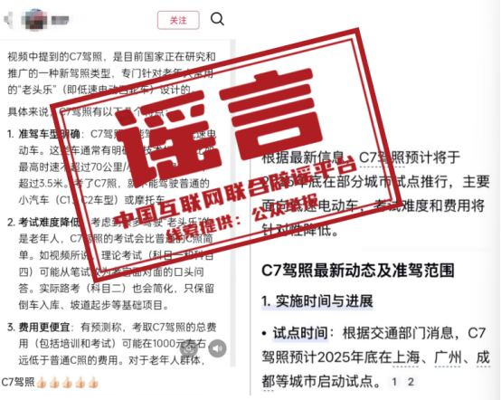 辟谣:“上海、广州等地试点‘老头乐’C7驾照”不实