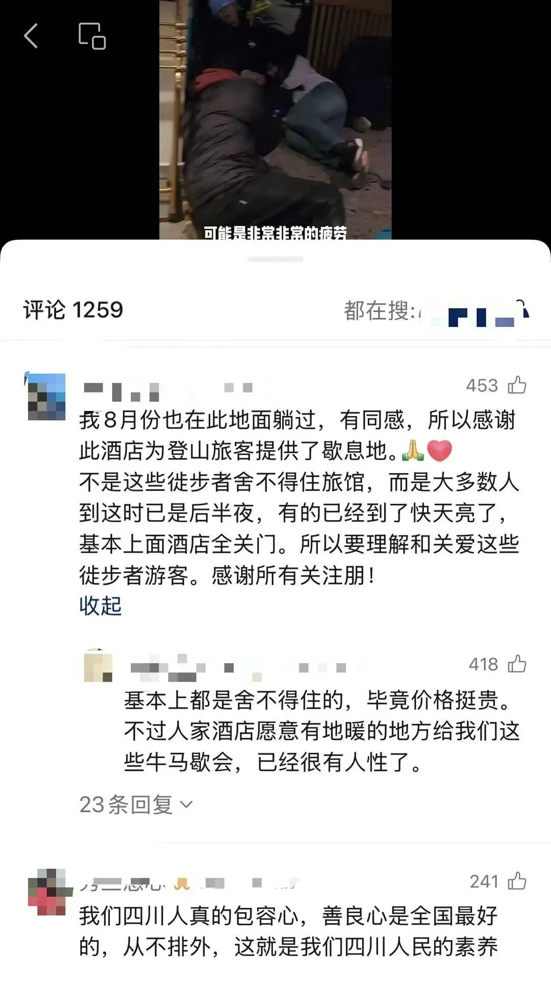 针对“游客被困山上,挤在酒店大堂过夜”的说法,上述负责人解释道:“挤在酒店大堂过夜的,并不是普通游客,而是登山客。”